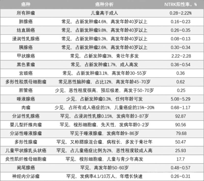 三、NTRK融合的癌种分布特征